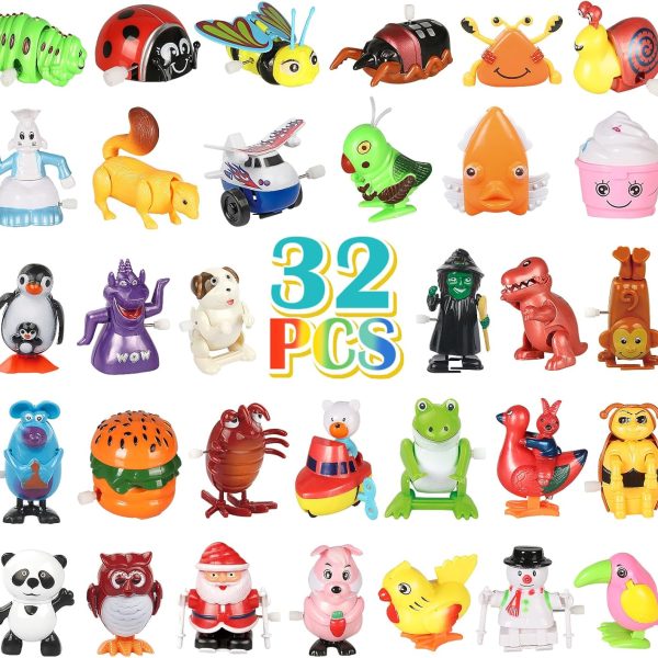 • 32 PCS Assorted Wind-up Toys for Kids, Bulk Windup Animals Walking Jumping Swimming Flipping Clockwork Toys for Kids Clossroom Party Favors, Birthday Gifts