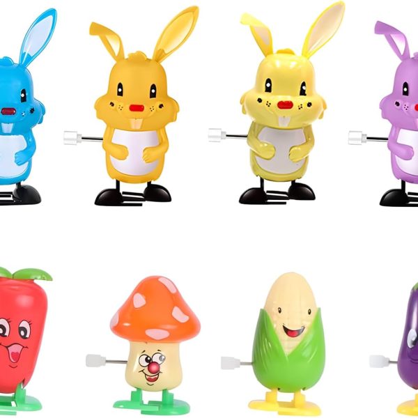 • 8 Pack Easter Wind Up Bunny Vegetable Toys, Cartoon Rabbit Wind-Up Toys Vegetable Clockwork Toys Novelty Walking Toys for Kids Easter Egg Hunt Basket Filler Party Favor Birthday Gift